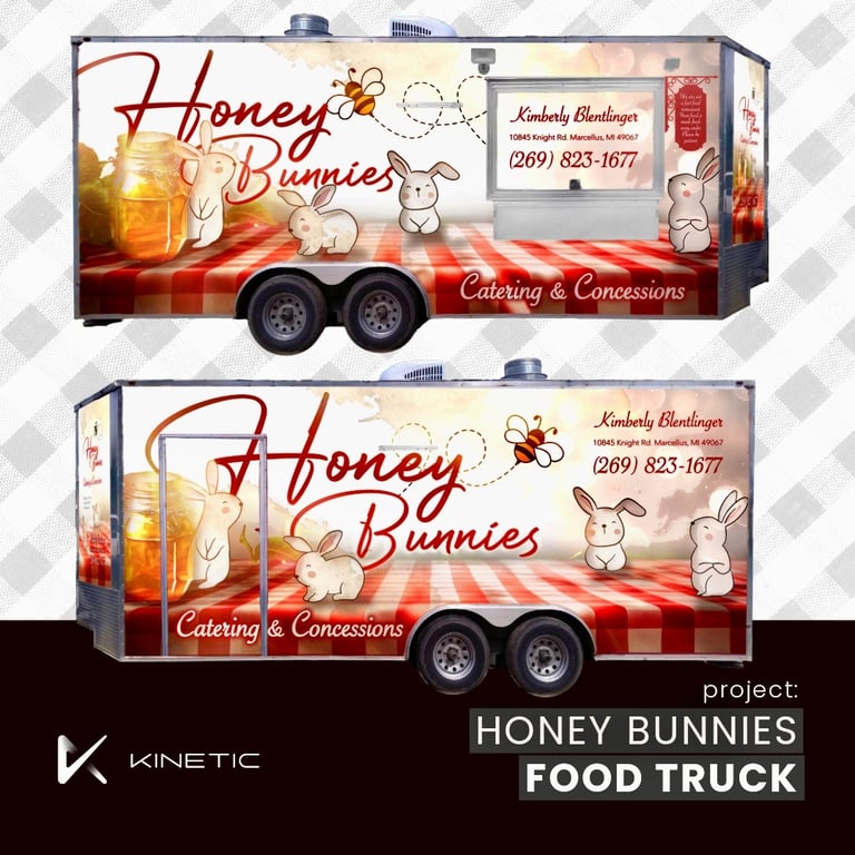 When it comes to design projects, few are as fun and heartwarming as creating a custom wrap for a food truck. Recently, I had the pleasure of working on a design for Honey Bunnies Catering & Concessions, a food truck that radiates charm, sweetness, and a wholesome vibe that matches its name perfectly. Here’s a behind-the-scenes look at how this project came to life.