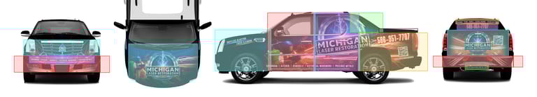 Partial Wrap: Typically includes 3 sides — Driver side, Passenger side, and either the Front or Back.